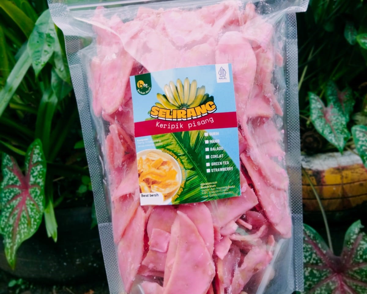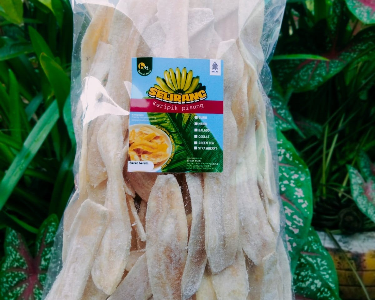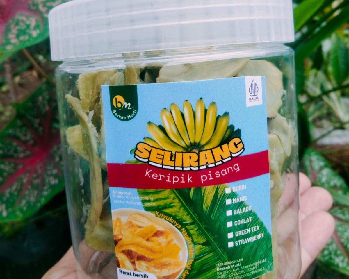 Keripik Pisang Selirang Berkah Makmur adalah camilan renyah yang dibuat dari pisang pilihan berkualitas tinggi. Diproses secara higienis dengan bumbu meresap sempurna, menghasilkan cita rasa yang gurih, manis dan khas. Dengan tekstur yang renyah dan aroma yang menggugah selera keripik pisang ini cocok dinikmati kapan saja sebagai teman minum teh, cemilan keluarga, atau oleh-oleh khas Kajoran Magelang. Tersedia dalam berbagai Varian rasa yaitu gurih, manis, coklat, matcha, strawberry dan balado. Memberi pilihan nikmat untuk semua selera.