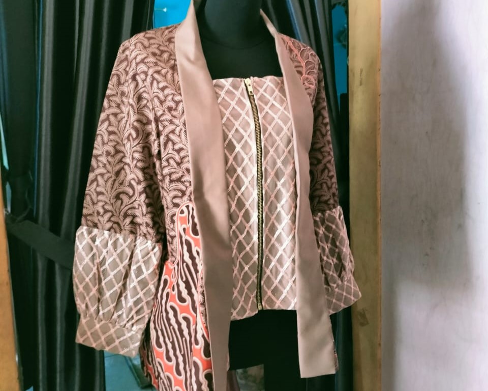 Kebaya batik di mix tille dengan model kutu baru sehingga menampilkan kesan glamor