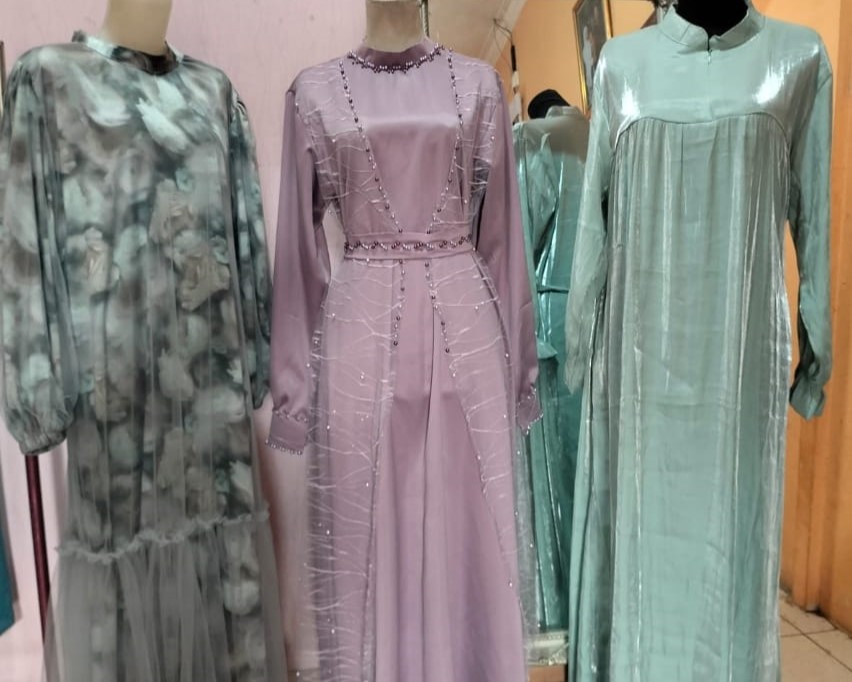 Gamis dengan bahan satin silk yang terkesan mewah sehingga cocok untuk acara kondangan bisa costum warna dan model
